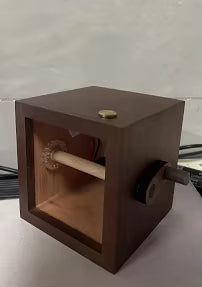 - 1 caja giratoria de madera con luz LED, manivela y botón táctil.